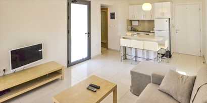 The family-run apartments offer 6 fully furnished quality holiday accommodations, 43 - 50 square meters each, with 2 air-conditions on each, one bedroom with double bed, sitting room and kitchen area, bathroom and two balconies on each apartment. Perfectly suited for families, couples, group of friends or associates.